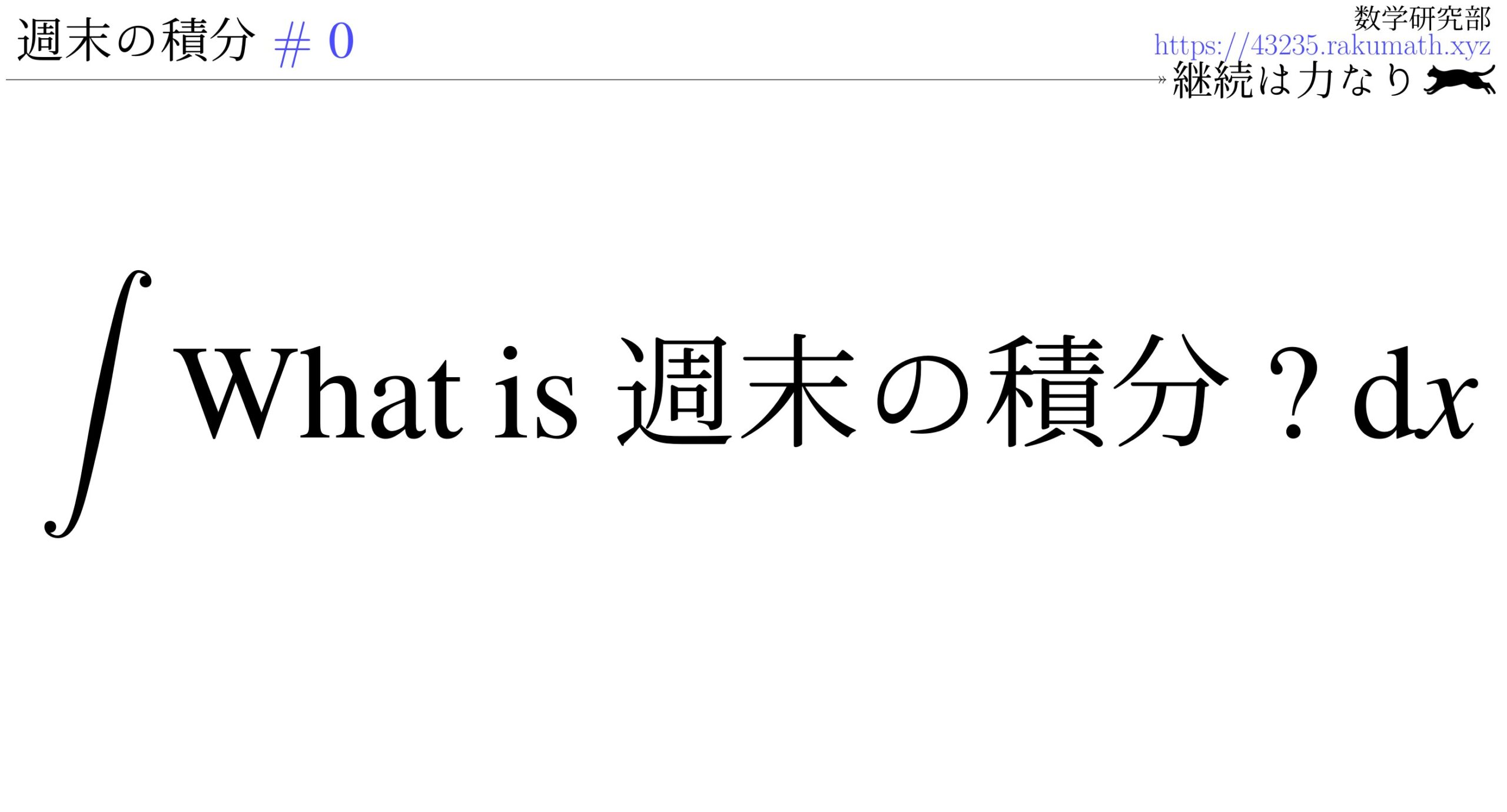 この度タイトルにもある通り、”週末”に”積分”の問題を一問ずつあげて解説していくという