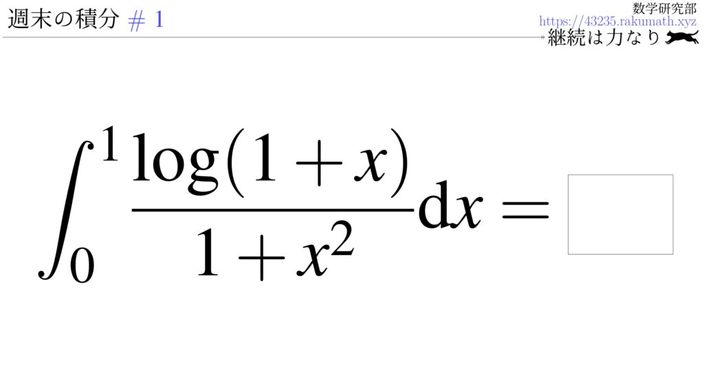 投稿形式ですが、「週末の積分 #$n$」の投稿にて、#$n$ の問題の解説と #$(n+1)$ の問題を掲載します。全$50$回の予定なので、どうぞ最後までお付き合いください。